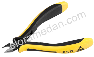 - pointed, narrow head, small version with fine bevel, maximum stability under load of the cutting edges by additional inductive hardening and box joint, with double opening leaf spring, polished and high gloss gunmetal-finish, with 2-C ESD handles, surface resistance 106–109 Ohm