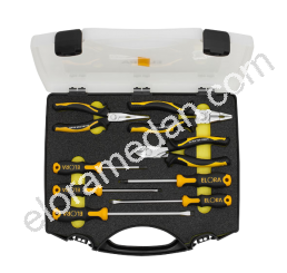 | 504-S8 | 1600 | PU:1 Contents: 470-BI 200 Snipe Nose Plier with side cutter, straight pattern 490-BI 165 Heavy Duty Side Cutter 495-BI 185 Engineer's Plier, German pattern 545-IS 100, IS 125, IS 150 Screwdriver, plain slotted 547-PH1, PH2 Screwdriver, cross slotted |