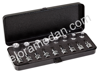 | 770-TXE | 3000 | PU:1 Contents: Sockets 1/2“ for outside TORX® screws 770-LTXE 10, 11, 12, 14, 16, 18, 20, 24 mm Screwdriver Sockets 1/2“ for inside TORX® safety screws 3245-TTX 20, 25, 27, 30, 40, 45, 50, 55, 60 mm |