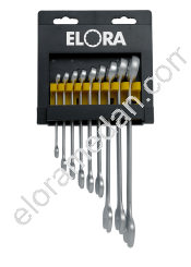 | 203-KH 9 | 1010 | PU:1 Contents: 203- 8, 10, 11, 12, 13, 14, 17, 19, 22 mm - Productinformation: ELORA "ELO-Drive" Combination and Ring Spanners are equipped with the "ELO-Drive" profile on the ring side: higher torque on the flanks of the screws/nuts without damage of the same dynamic and safe working |